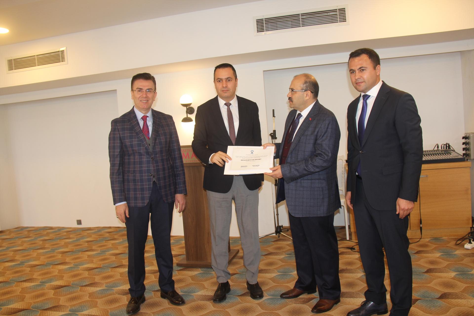Trabzon Valimiz İsmail Ustaoğlu, Vakfıkebir Kaymakamımız Dr. Hacı Arslan Uzan, Vakfıkebir Belediye Başkanımız Muhammet Balta, AK Parti Vakfıkebir İlçe Başkanı Ahmet Uzun, Vakfıkebir OSB Müdürümüz Duygu Sağlam ve Müteşebbis Heyeti Üyelerinin katılımıyla, Ramada Otel'de düzenlenen tören ile Vakfıkebir Organize Sanayi Bölgemizde fabrika kurmak üzere parsel tahsisi gerçekleştirilen 13 firmaya Tahsis Belgeleri verildi.